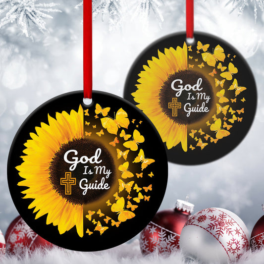 God Makes My Way - Beautiful Sunflower Ceramic Circle Ornament - Christian Gift For Friends