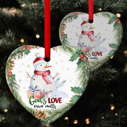God‘s Love Never Melts - Snowman Ceramic Heart Ornament - Gift For Christmas