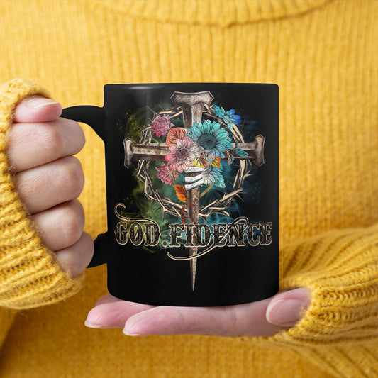 Godfidence, Flower, Three Nails, Crown Of Thorns, God Mug, Faith Mug, Jesus Mug, Christ Mug