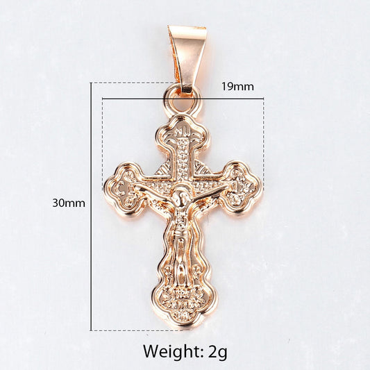 Gold Cross Pendant Necklace With Clear Crystal For Men and Women