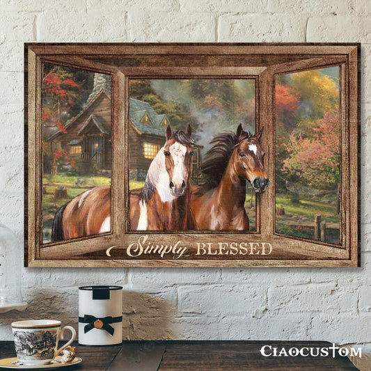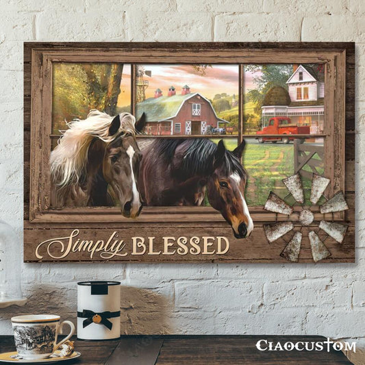 Horse And House - Simply Blessed - Jesus Canvas Wall Art - Bible Verse Canvas - Christian Canvas Wall Art - Ciaocustom