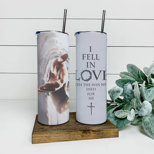 I Fell In Love With The Man - Jesus Tumbler - Stainless Steel Tumbler - 20 oz Skinny Tumbler - Tumbler For Cold Drinks - Ciaocustom