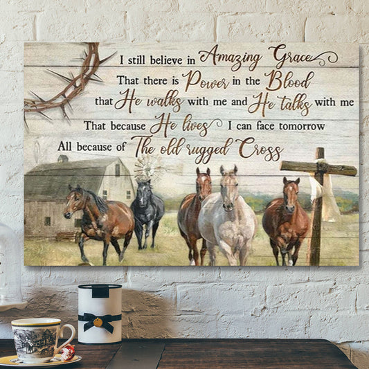 Horse Old Barn - I Still Believe In Amazing Grace - Bible Verse Canvas - Jesus Canvas - Scripture Canvas Wall Art - Ciaocustom