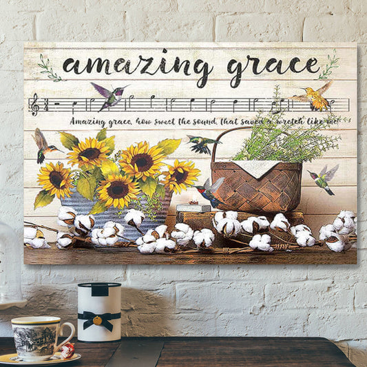 Farmhouse Hummingbirds - Amazing Grace - Bible Verse Canvas - Scripture Canvas Wall Art - Ciaocustom