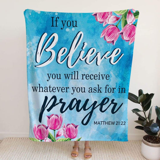 Matthew 2122 If You Believe You Will Receive Fleece Blanket - Christian Blanket - Bible Verse Blanket