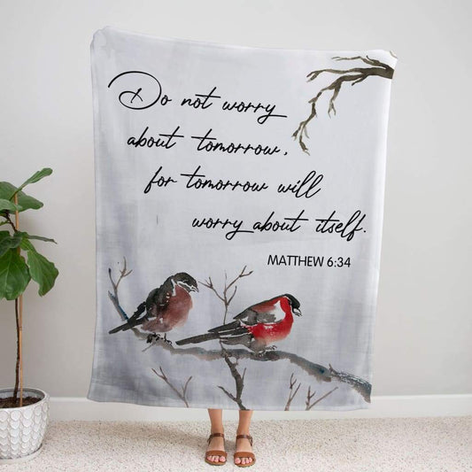 Matthew 634 Do Not Worry About Tomorrow Fleece Blanket - Christian Blanket - Bible Verse Blanket