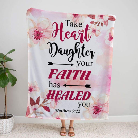 Matthew 922 Take Heart Daughter Your Faith Has Healed You Fleece Blanket - Christian Blanket - Bible Verse Blanket