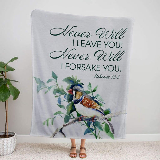 Never Will I Leave You Never Will I Forsake You Hebrews 135 Fleece Blanket - Christian Blanket - Bible Verse Blanket