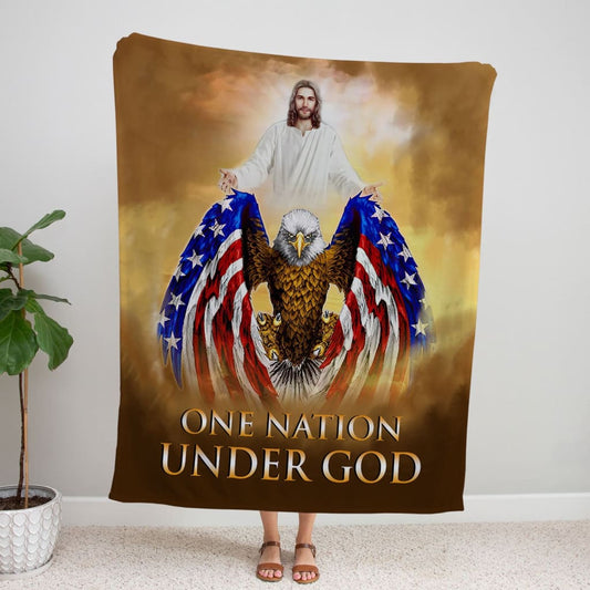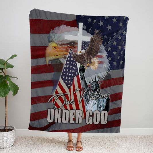 One Nation Under God American Flag Fleece Blanket - Christian Blanket - Bible Verse Blanket