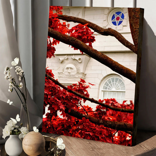 Nauvoo Temple Red Leaves Vertical Crop Canvas Pictures - Jesus Canvas Art - Christian Wall Art