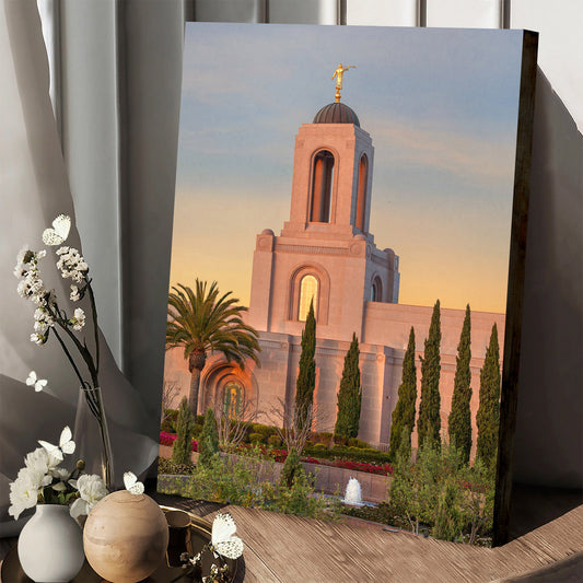 Newport Beach Temple Sunlit Spire Canvas Pictures - Jesus Canvas Art - Christian Wall Art