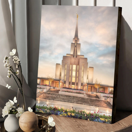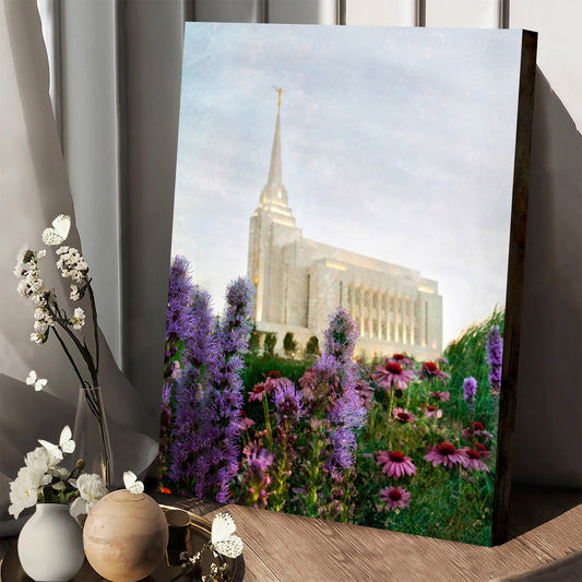 Rexburg Temple Summer Flowers Canvas Pictures - Jesus Canvas Art - Christian Wall Art