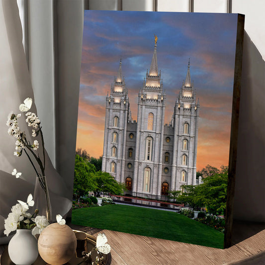 Salt Lake Temple Orange Twilight Canvas Pictures - Jesus Canvas Art - Christian Wall Art