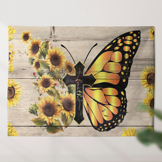 Sunflower With Cross Tapestry - Christian Tapestry - Jesus Wall Tapestry - Religious Tapestry Wall Hangings - Bible Verse Tapestry - Ciaocustom