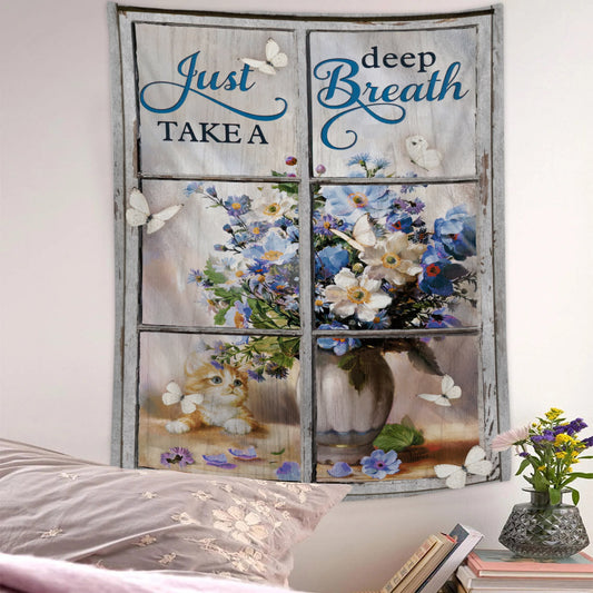 Just Take A Deep Breath Tapestry - Flowers - Butterfly - Bible Verse Tapestry - Religious Tapestry - Christian Tapestry Wall Hanging - Ciaocustom