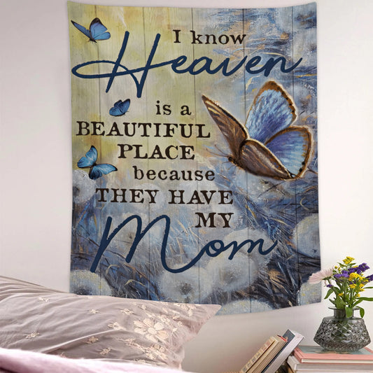 I Know Heaven Is A Beautiful Place Because They Have My Mom Tapestry - Christian Tapestry - Jesus Wall Tapestry - Religious Tapestry - Ciaocustom