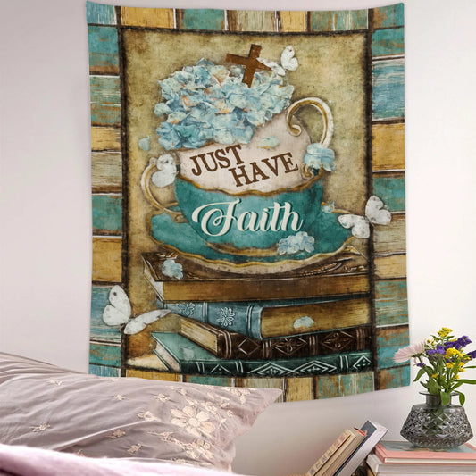 Just Have Faith Tapestry - Cross - Bible Verse Tapestry - Christian Wall Art - Religious Tapestry Wall Hangings - Christian Tapestry - Ciaocustom