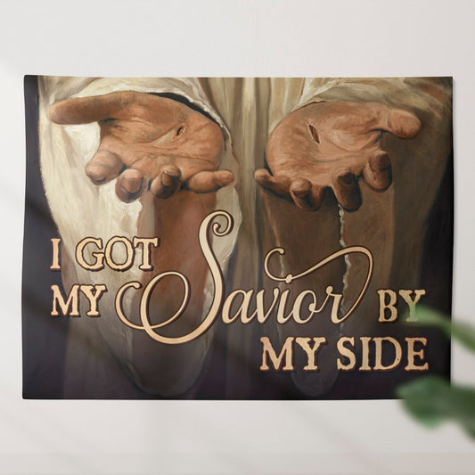 Jesus Stretched Out His Hand Tapestry - I Got My Savior By My Side - God Tapestry - Jesus Wall Tapestry - Christian Tapestry - Ciaocustom