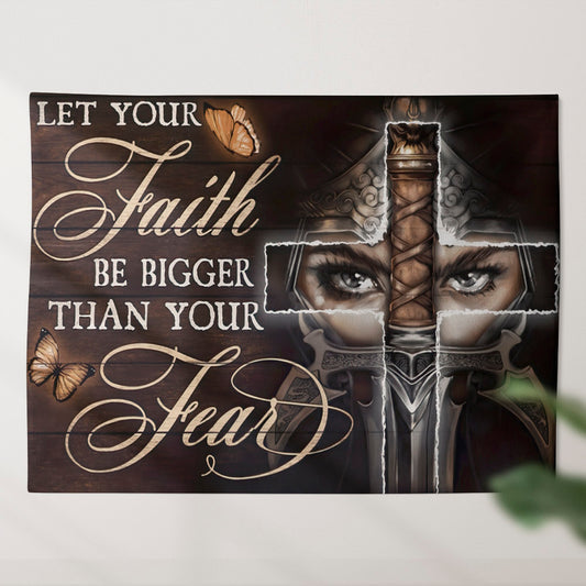 Let Your Faith Be Bigger Than Your Fear - Cross And Female Warrior Tapestry - God Tapestry - Christian Tapestry - Religious Tapestry - Ciaocustom