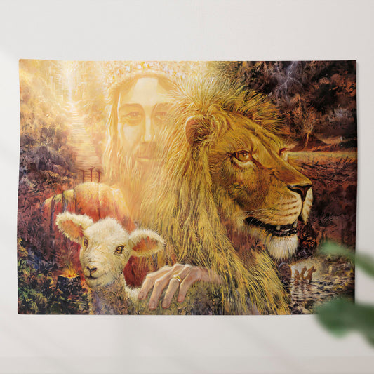 Jesus The Lion Of Judah - Christian Tapestry - Religious Wall Decor - Christian Wall Tapestry - Ciaocustom