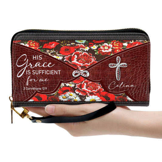 Beautiful Personalized Cross Clutch Purse - His Grace Is Sufficient For Me Clutch Purse - Women Clutch Purse