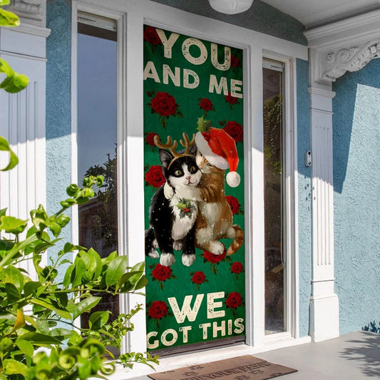 You And Me We Got This Door Cover - Cat Couple Valentine's Day Door Cover - Christmas Outdoor Decoration