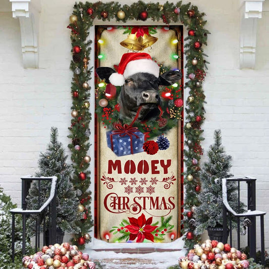 Mooey Christmas Angus Cow Door Cover - Christmas Door Cover Decorations - Christmas Outdoor Decoration