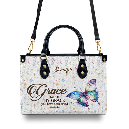 For It Is By Grace You Have Been Saved Ephesians 28 Worship Gift For Spiritual Friends Personalized Leather Handbag With Handle