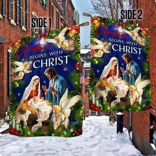 Christmas Begins With Christ Flag - Religious Christmas House Flags - Religious Christmas House Flags - Christmas Flags