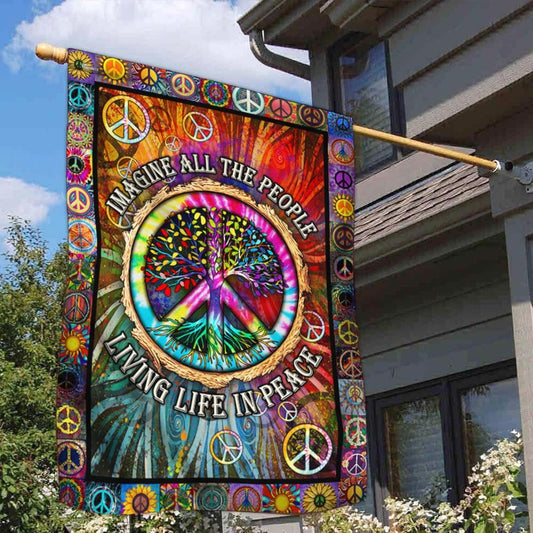 Hippie Peace Sign Tree Of Life Hippie Flag - Outdoor House Flags - Decorative Flags