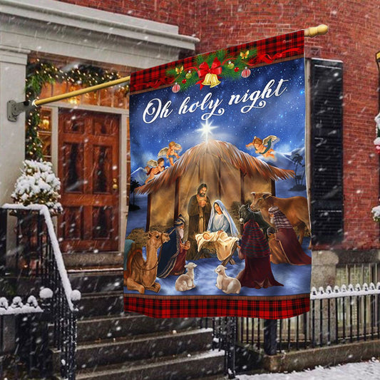 Christmas Flag Nativity Scene Oh Holy Night Jesus Was Born - Religious Christmas House Flags
