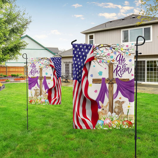 Easter Rabbit Jesus Cross He Is Risen American Flag - Easter House Flag - Outdoor Easter Flag