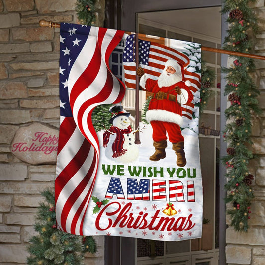 Santa Claus US Flag We Wish You Ameri Christmas - Religious Christmas House Flags