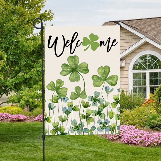 Welcome St. Patricks Day Green Shamrock Clover House Flag - St. Patrick's Day Garden Flag - Outdoor St Patrick's Day Decor