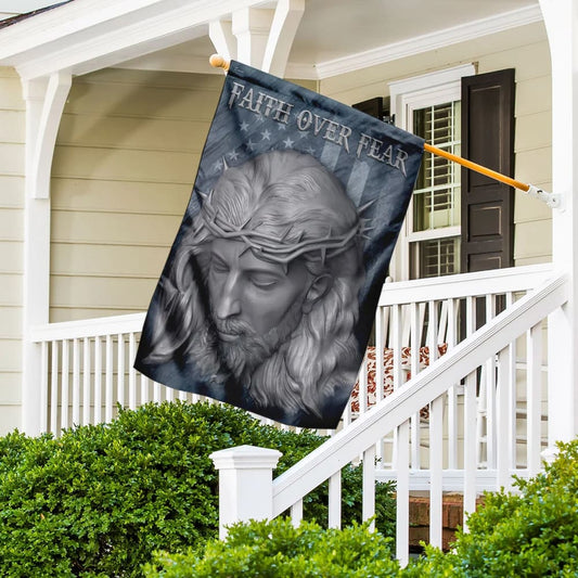 Faith Over Fear Jesus American U S Flag - Outdoor Christian House Flag - Christian Garden Flags