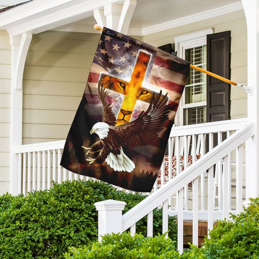 Jesus Lion Patriot American US Lion King Jesus Christ Jesus American House Flags - Christian Garden Flags - Outdoor Christian Flag