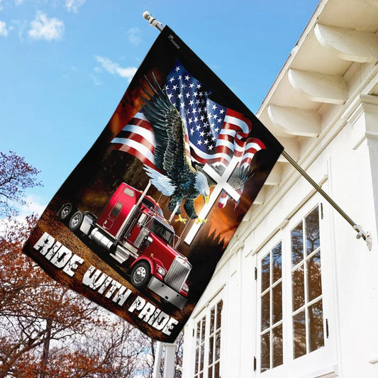 Jesus American Eagle Trucker Ride With Pride House Flags - Christian Garden Flags - Outdoor Christian Flag