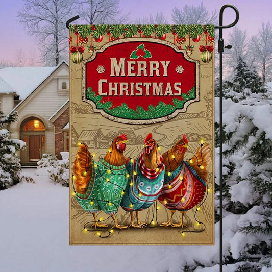 Chicken Christmas Flag Three Hens With Light Vintage Flag - Christmas Garden Flag - Christmas House Flag - Christmas Outdoor Decoration