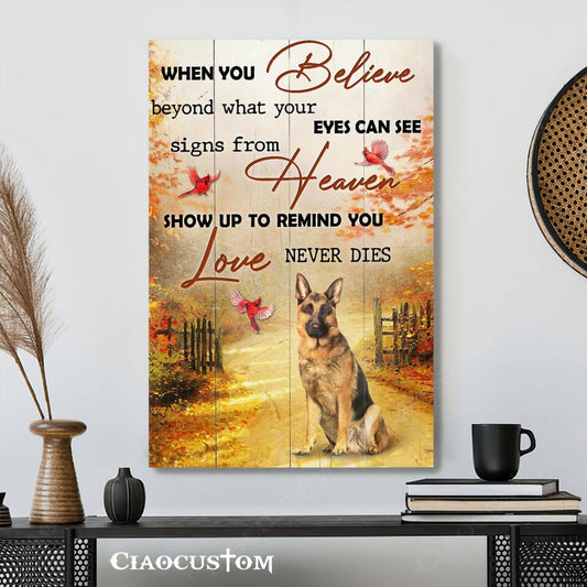 • When You Believe Beyond What Your Eyes Can See - German Shepherd Canvas - Bible Verse Canvas - Christian Canvas Wall Art - Ciaocustom