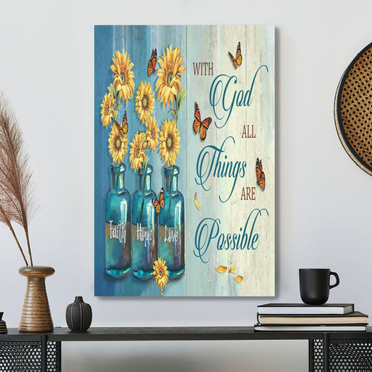 With God All Things Are Possible Floral - Bible Verse Canvas Wall Art - Scripture Canvas - Ciaocustom
