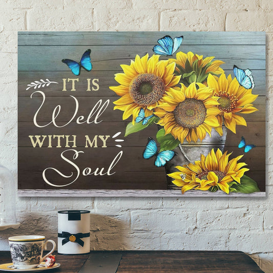 Bible Verse Canvas - It Is Well With My Soul Butterfly Sunflower Canvas Art - Scripture Canvas Wall Art - Ciaocustom