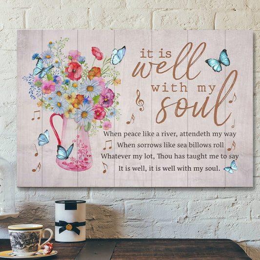 Bible Verse Canvas - It Is Well With My Soul Butterfly Floral Canvas Wall Art - Scripture Canvas Wall Art - Ciaocustom
