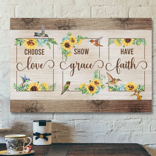 Bible Verse Canvas - Choose Love Show Grace Have Faith Hummingbird Sunflower Wall Art Canvas - Scripture Canvas Wall Art - Ciaocustom