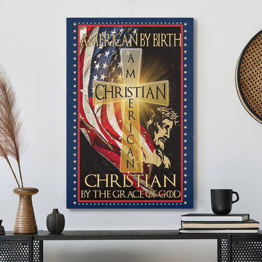 Bible Verse Canvas - American By Birth Christian By The Grace Of God Canvas - Scripture Canvas Wall Art - Ciaocustom