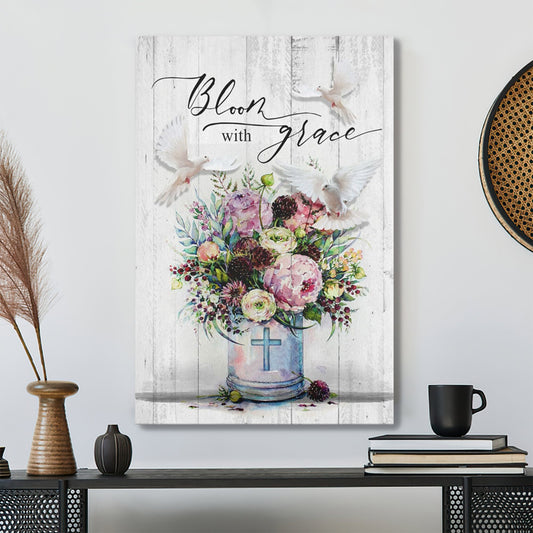 Bible Verse Canvas - Bloom With Grace Dove Floral Canvas - Scripture Canvas Wall Art - Ciaocustom