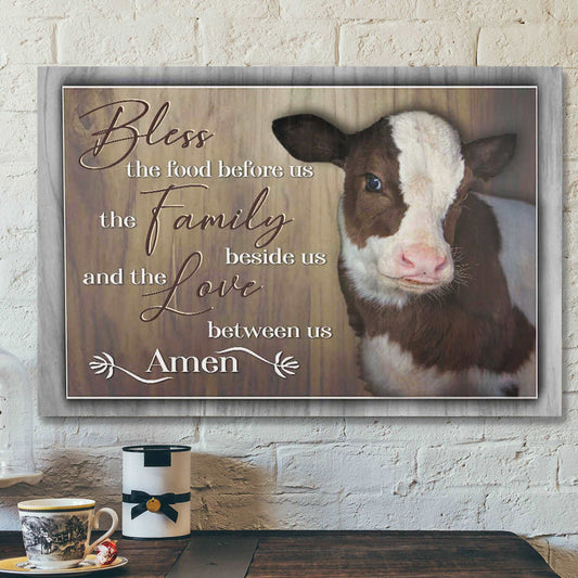 Beautiful Cow - Bless The Family Beside Us Farmhouse - Bible Verse Canvas - Scripture Canvas Wall Art - Ciaocustom
