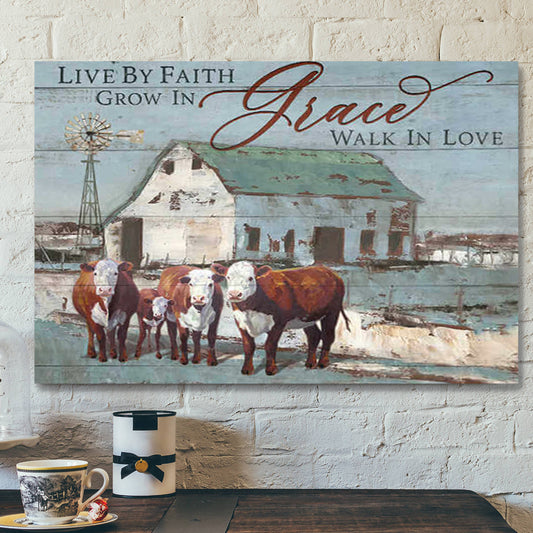 Farm Farmhouse Hereford Cows Canvas Live By Faith - Bible Verse Canvas - Scripture Canvas Wall Art - Ciaocustom