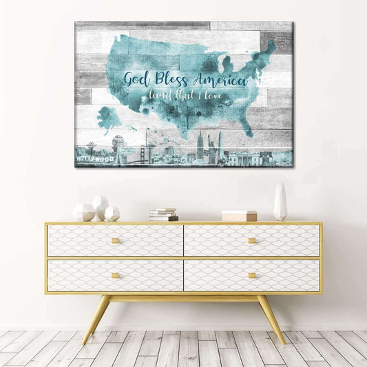 God Bless America USA Map Canvas Wall Art - Christian Canvas Wall Art - Religious Wall Art Canvas