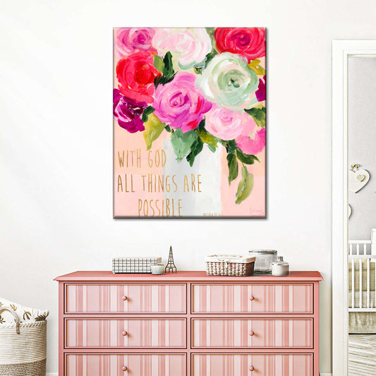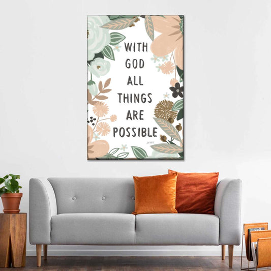 With God All Things Are Possible Wall Art Canvas - Christian Wall Hangings - Bible Verse Wall Art Canvas