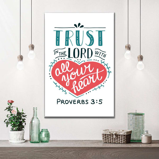 Trust In The Lord Proverbs Wall Art Canvas - Christian Wall Hangings - Bible Verse Wall Art Canvas